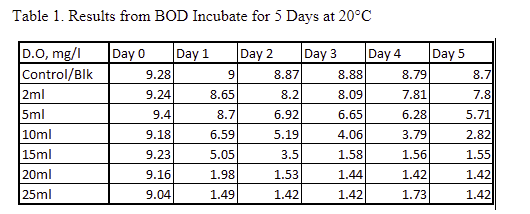 Lab Report 4 Final 1 Objective This Experiment Was Conducted To Measure The Five Day Biochemical Oxygen Demand Bod5 Of Samples Of Raw Wastewater Course Hero
